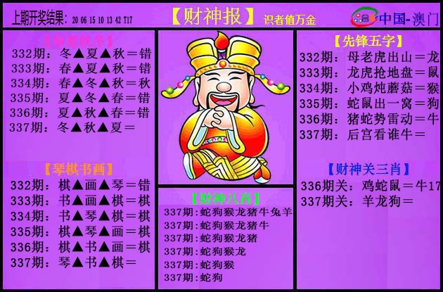337期: 澳门六合皇彩圖信封【红财神报】每期自动更新